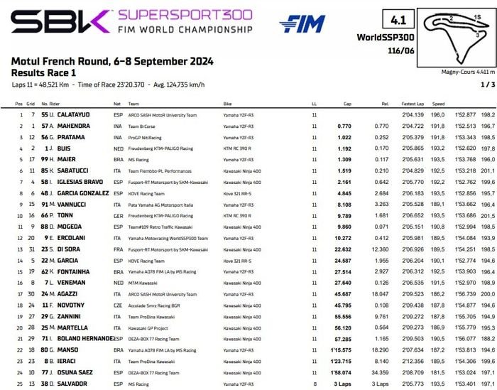 Balapan pertama alias race 1 berlangsung di Sirkuit Magny Cours, Prancis pada Sabtu (7/9/2024).